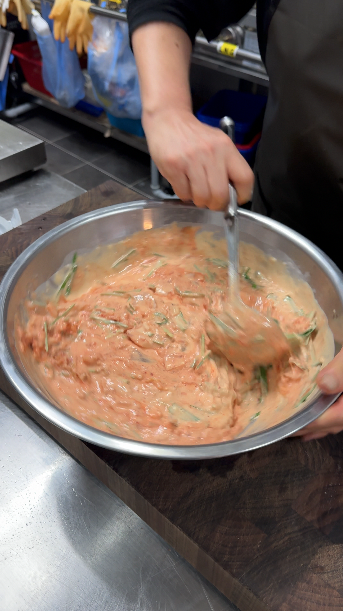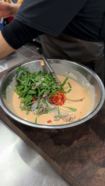 7) 손질한 재료들을 모두 반죽에 넣어주세요!