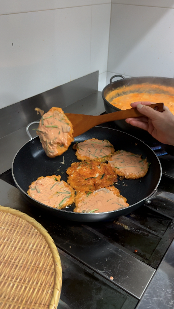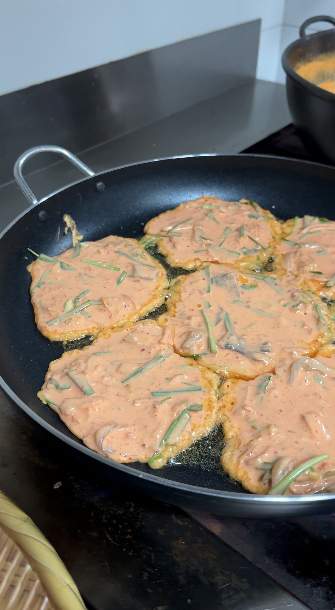 15) 준비한 반죽 다 될때까지 예쁘게 부쳐주면 끝!