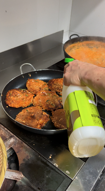 12) 한번씩 뒤집고, 기름을 살짝 추가해주세요!