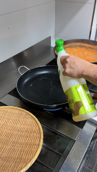 9) 중불 이상에서, 가열된 팬에 식용유 넉넉히 넣어주세요!