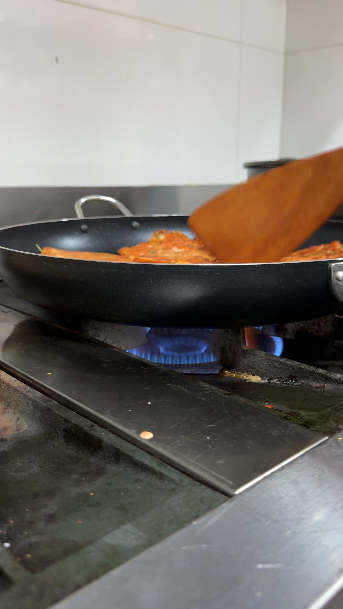 11) 사이드 부분이 색깔이 변하고, 주걱으로 살짝 밀었을때 움직인다면!! 한장씩 뒤집어주세요!